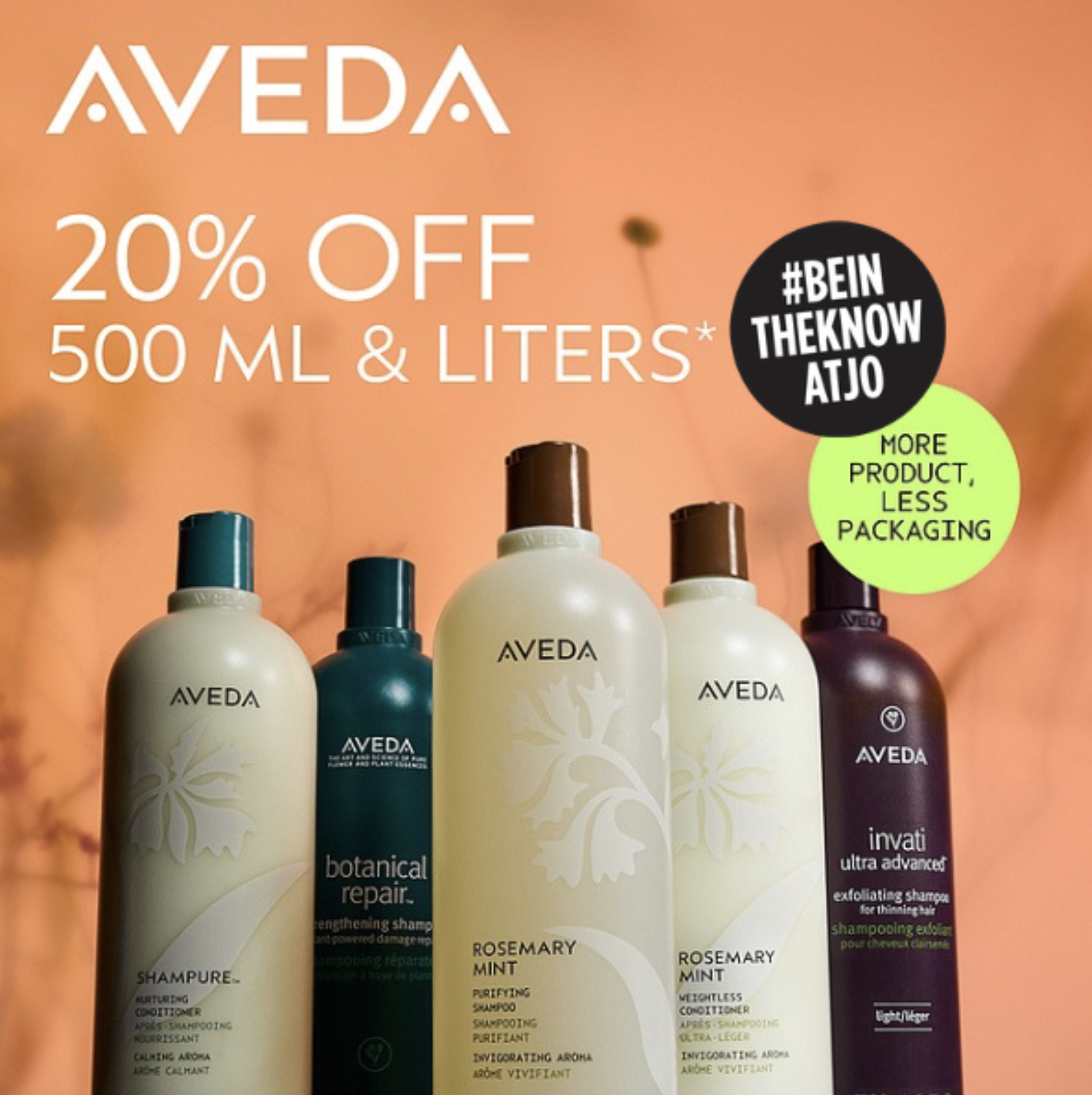 Itβs the last week to save 20% on Aveda liters and 500ml hair and body care favorites! #BeInTheKnowAtJO